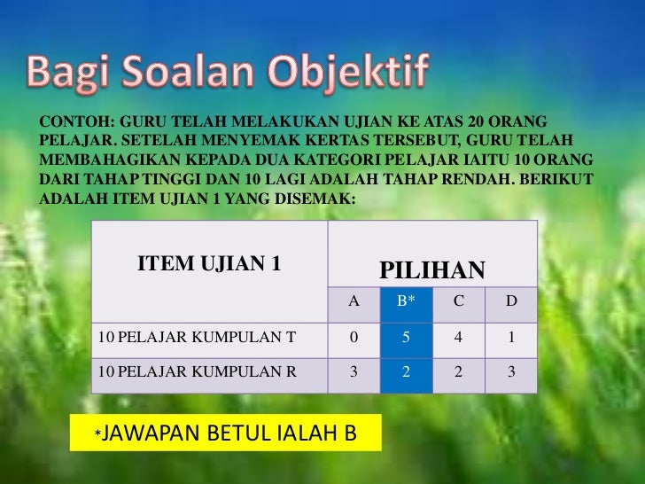 Analisis Item Soalan Objektif via www.slideshare.net